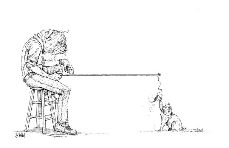 Please select which 11"x17" black & white art print(s) you'd like from the "SELECT OPTION" drop box... Prints available: - "You Sure There's Nothing Wrong?" Pinnochio 'Three Ugly Motherf#@%ers' - Alien/Predator 'Strange Friends' - dog w/ cat 'The Twins' - wagon bros. All 11" x 17" & hand signed by artist.
