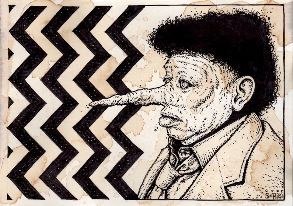 "Diane, 11:30AM, February 24th. Now entering the town of Twin Peaks."5" x 7", ink on coffee-stained watercolor paper.Damn fine, one of a kind illustration.