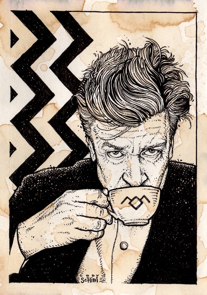 "Diane, 11:30AM, February 24th. Now entering the town of Twin Peaks."5" x 7", ink on coffee-stained watercolor paper.Damn fine, one of a kind illustration.
